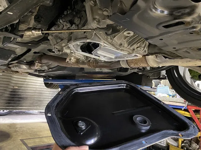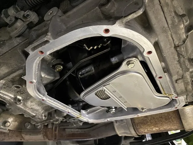ミッションの調子が悪いなどの症状は無いけれどもこれからも長く乗りたい・しっかり整備希望がベースにありましたのでオイルパンを脱着してのストレーナ交換と内部の清掃も施工をお勧め。