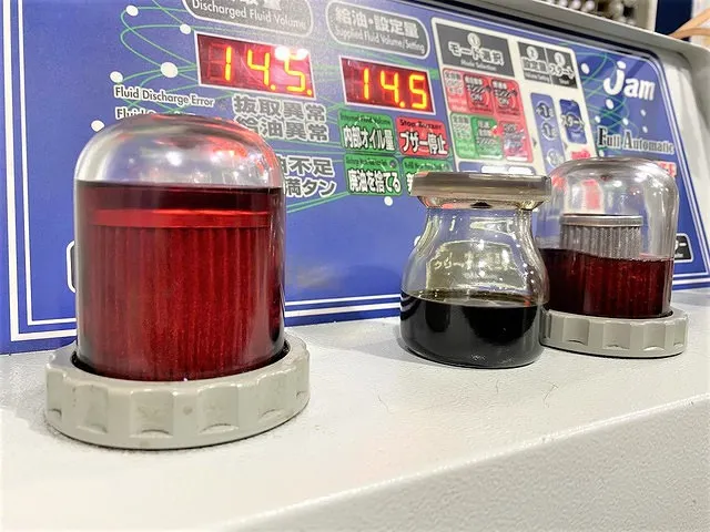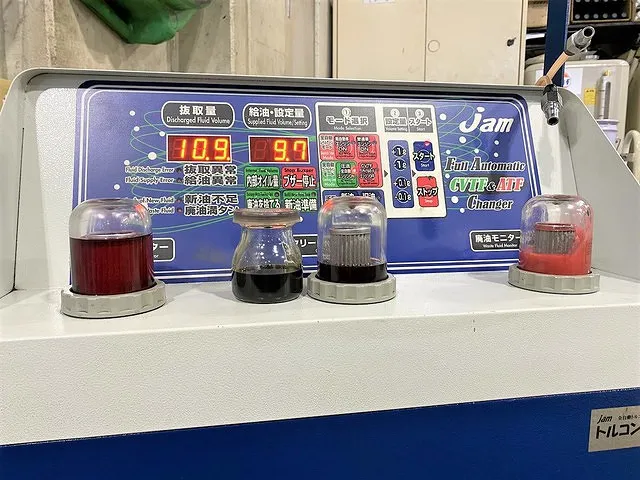 右 【廃油モニター】ATから抜き取られた廃ATFの状態が確認できるモニター