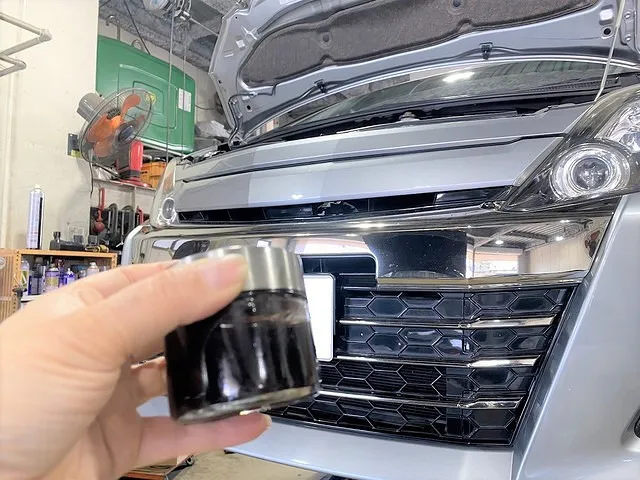 トランスミッションの容量はこちらのアルファードは8.7リットルにつき「半分以上抜けてるじゃん!」と思われがちですが、各ホース内やオイルクーラー内などにもそれぞれフルードが回っているためきっちり8.7リットルで十分ではありません。