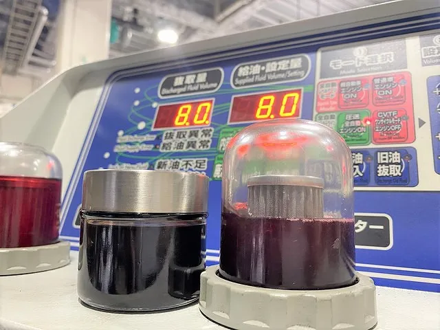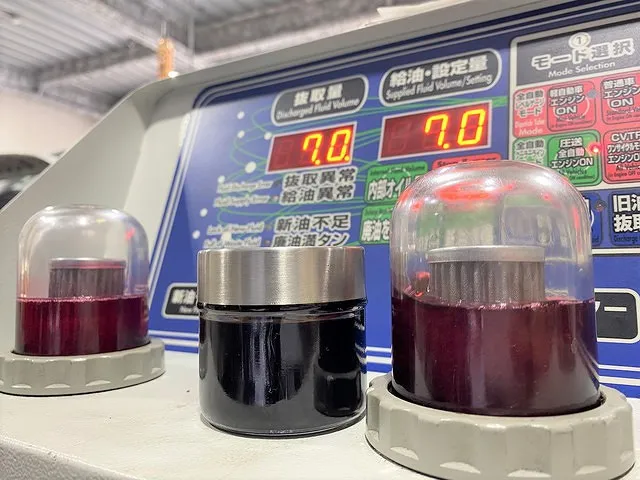 一番右 廃油モニター・・・トランスミッションから抜き取ったCVTF