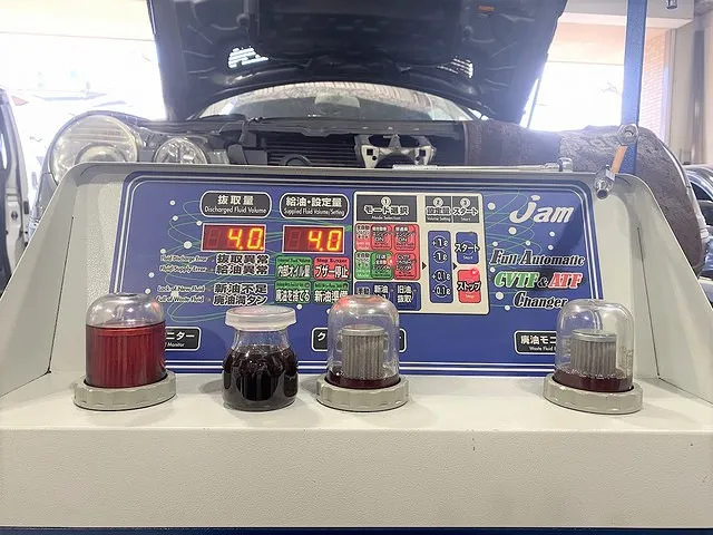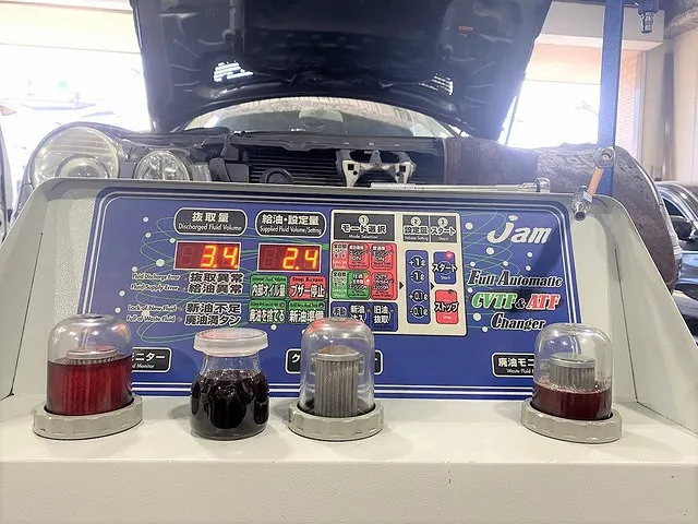 スタートボタンを押したらすぐにトランスミッションから廃油が抜き取られていきます。