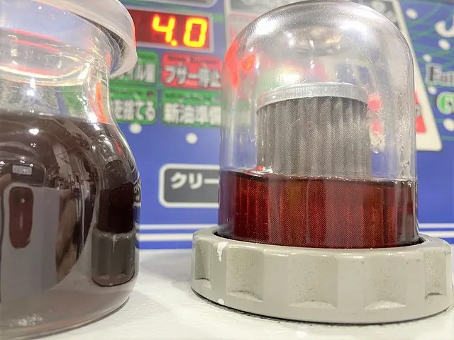 左:新油モニター・・これからトランスミッションに供給されるATF