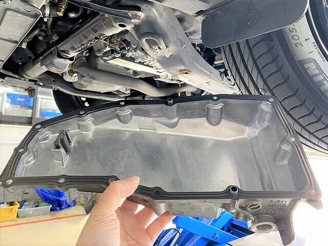リフレッシュにて、ATオイルパンを脱着・内部清掃を施工していきます。