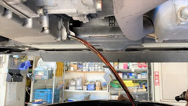2ラインのため廃油はそのまま廃油缶へ排出されますので、ミッション内に再び戻ることはありません。