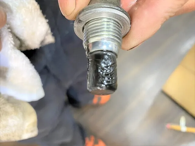 右側のドレンプラグに付着するこのヌメヌメとした物体が、鉄粉やスラッジが含まれた老廃物です。