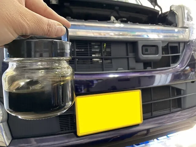 1万kmまえにCVTFを交換したばかりとのことですが、汚れが希釈された状態ですので光を通さないくらいの黒味。