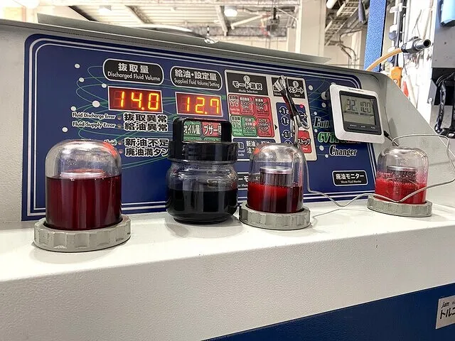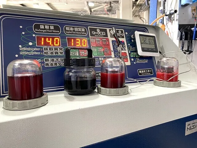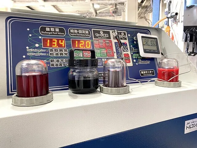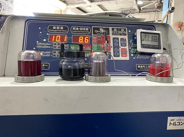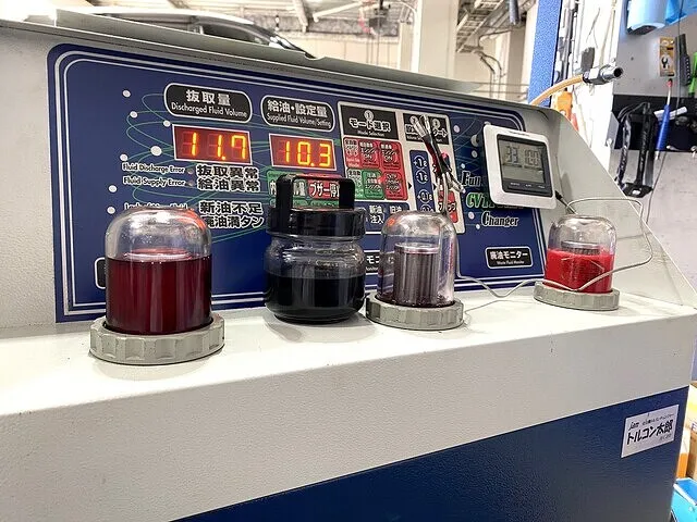 右 【廃油モニター】ATから抜き取られた廃ATFの状態が確認できるモニター