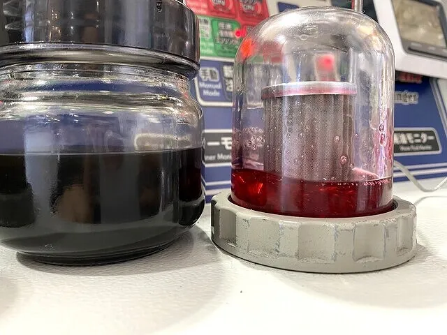 比較用に作業前に取り出しておいた廃油サンプルをご用意。