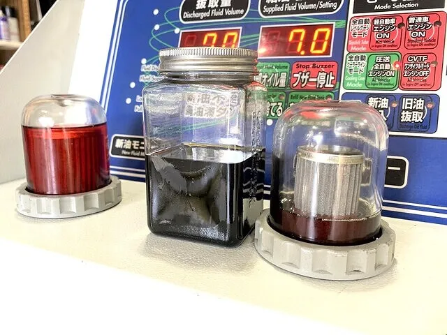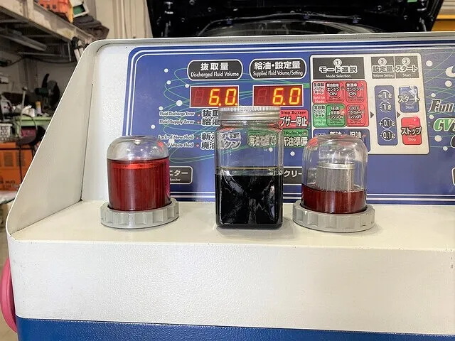 右 【廃油モニター】ATから抜き取られた廃ATFの状態が確認できます