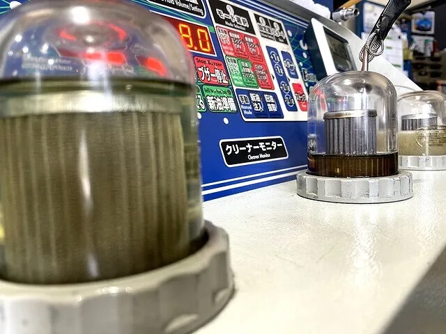 右 廃油モニター・・・トランスミッションから抜き取られた廃油の状態