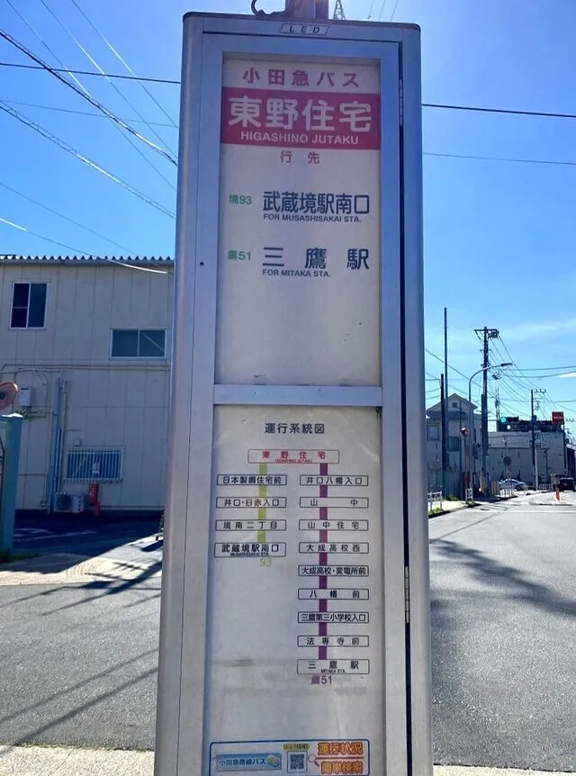 小田急バス 東野住宅バス停 三鷹駅・武蔵境駅行き情報