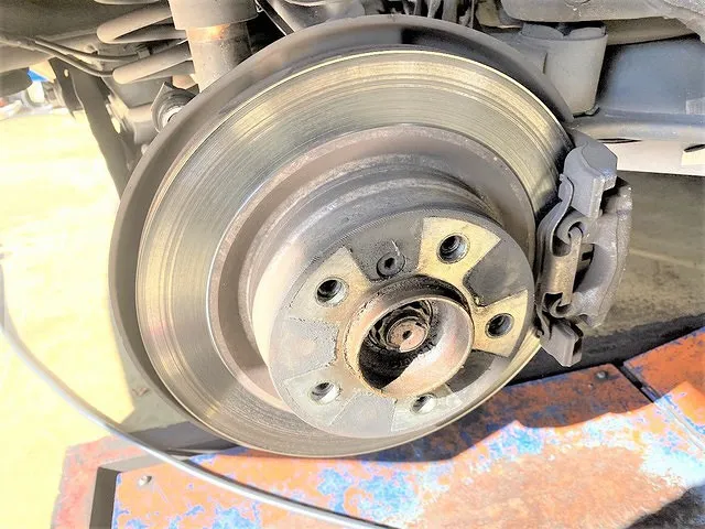 経年の間に、ブレーキ周りが劣化するのはしょうがないことなのですが、ハブの部分にダストの汚れと油分が相まってべとべとしている状態でした。