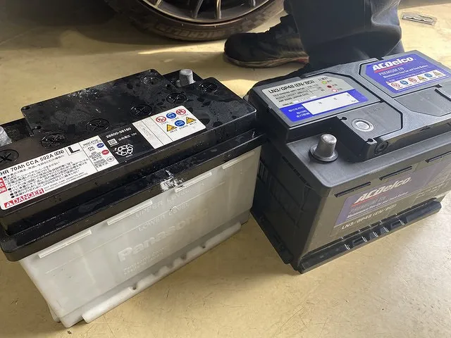 左が取り外したパナソニックバッテリー、右が持ち込みの新品ACDelcoバッテリー。