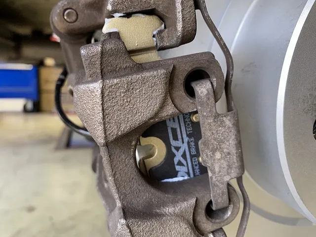 リアに関しては近年のお車は電子ブレーキが多く、テスターでパーキングシステムを解除をしないと交換ができません。
