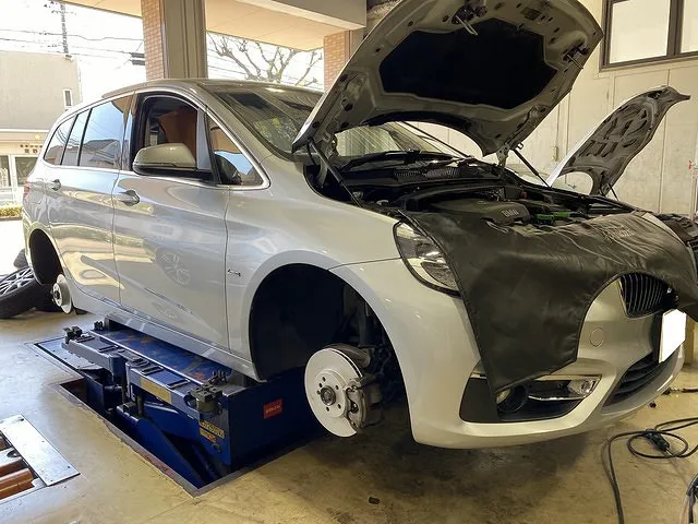 BMW 218d F46 ブレーキ持ち込み交換 社外パーツ 東京三鷹 ワイズガレージ