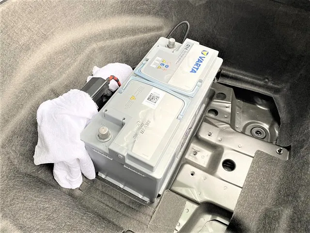 バッテリーを新たなVARTAへ取り変えまして、あとはテスターを使用して情報の書き換え作業コーディングを施工し作業完了です。