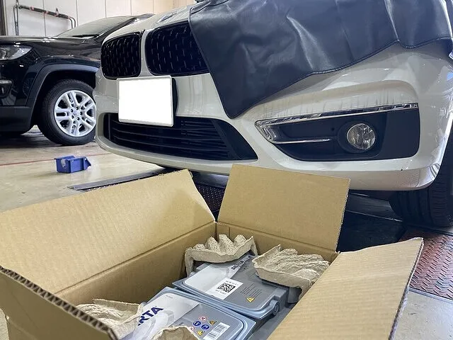 三鷹市 BMW 218d バッテリー持ち込み交換 バッテリーは直送 ワイズガレージ 山吹自動車