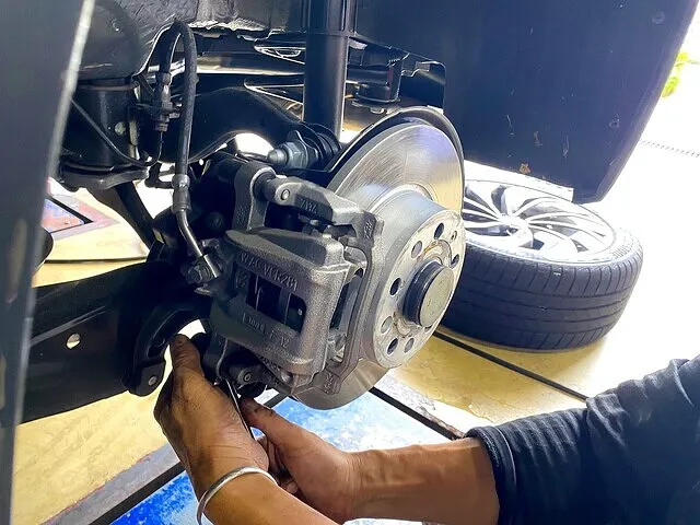 リアブレーキはEPBですので、テスターを使用してブレーキピストンをキャンセルしたり元に戻したりが必要です。