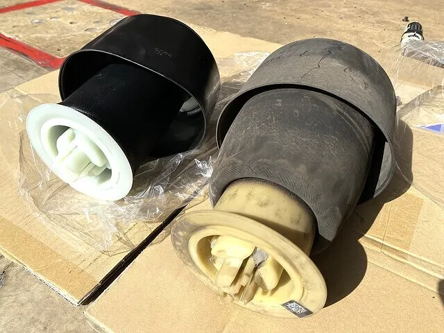 BMW5シリーズの純正エアーサスペンションはゴム製のため経年劣化による空気漏れが起こりやすくなります。
